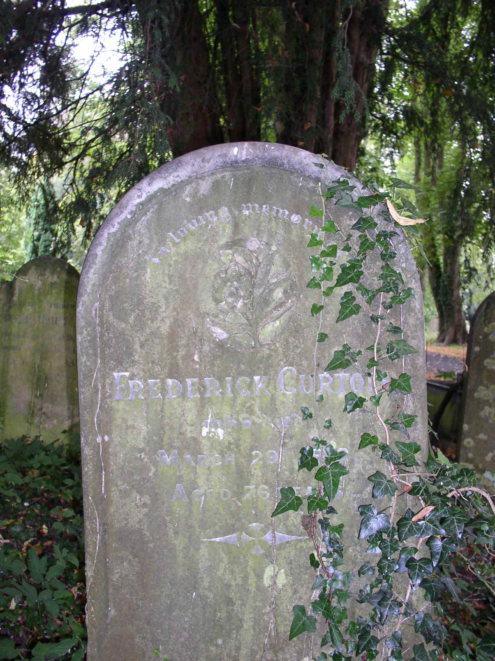 Frederick Curtois is buried in the Boston Burial ground in Lincolnshire, in a part of the cemetery which is no longer maintained. Despite knowing roughly where he was buried, I stumbled across him more by luck than judgement. His wife Mildred is somewhere nearby (with a headstone according to the records), but I couldn't find her. Their son Peregrine Samuel is in the same cemetery, but in an unmarked grave.